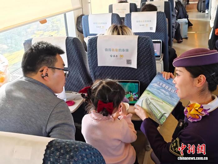 中国铁路上海局集团有限公司上海客运段列车员为孩子提供书籍。姚佳 摄