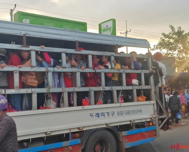 公路两旁高楼林立,大多是崭新的建筑。夕阳西下时刻,原本较为通畅的道路会变得异常拥堵,一些下班的工人骑着摩托车挤进车道,更多的工人则是以“站票”“挂票”的姿势挤在车厢里,从工地回到住所。